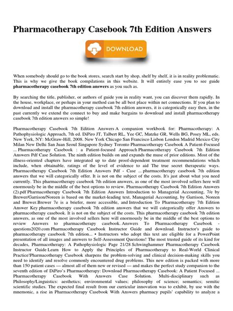Read PHARMACOTHERAPY CASEBOOK ANSWERS DOWNLOAD Paperback ManyBooks